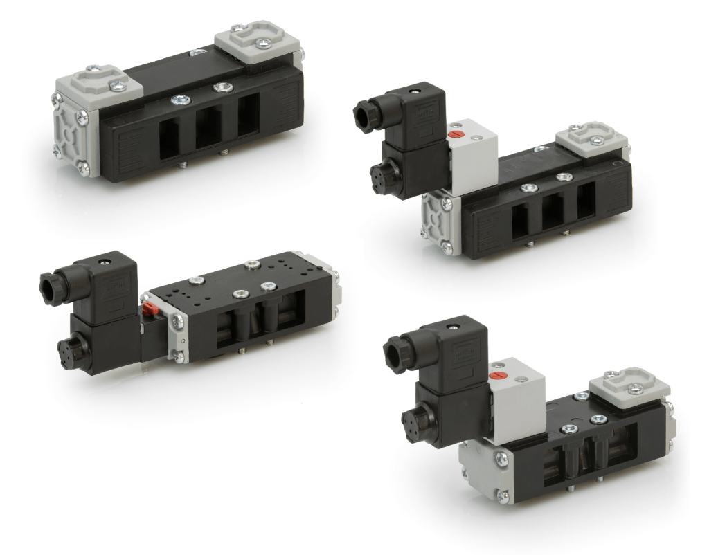 Compact solenoid valves, single or double acting, suitable for air and vacuum.