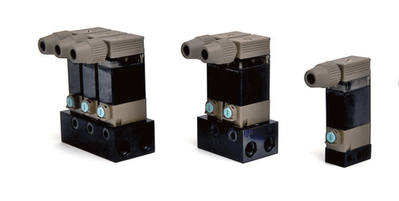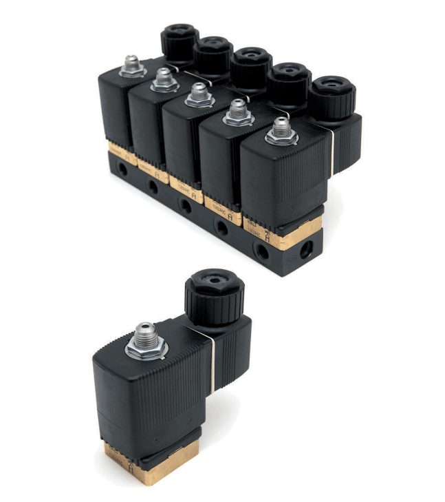 Compact solenoid valves, single or double acting, suitable for air and vacuum.